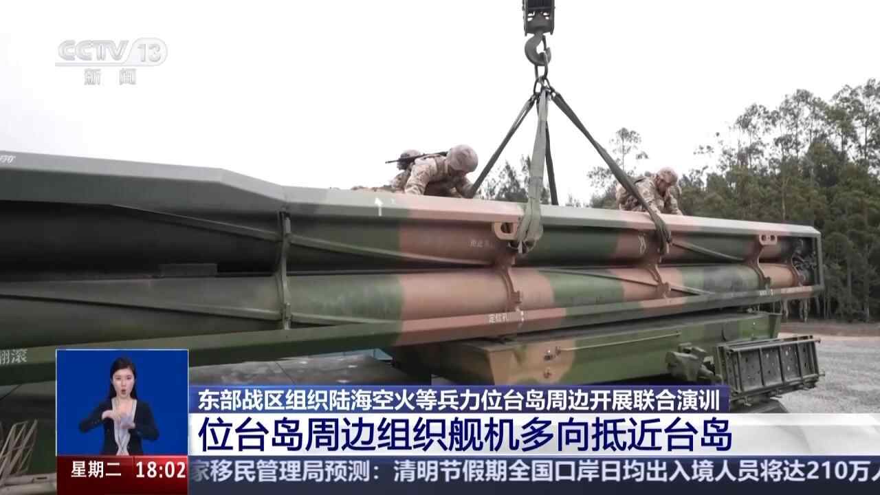 4月1日开始,中国人民解放军东部战区组织陆军、海军、空军、火箭军等兵力,位台岛周边组织舰机多向抵近台岛,重点演练海空战备警巡、夺取综合制权、对海对陆打击、要域要道封控等科目,检验战区部队联合作战实战能力。