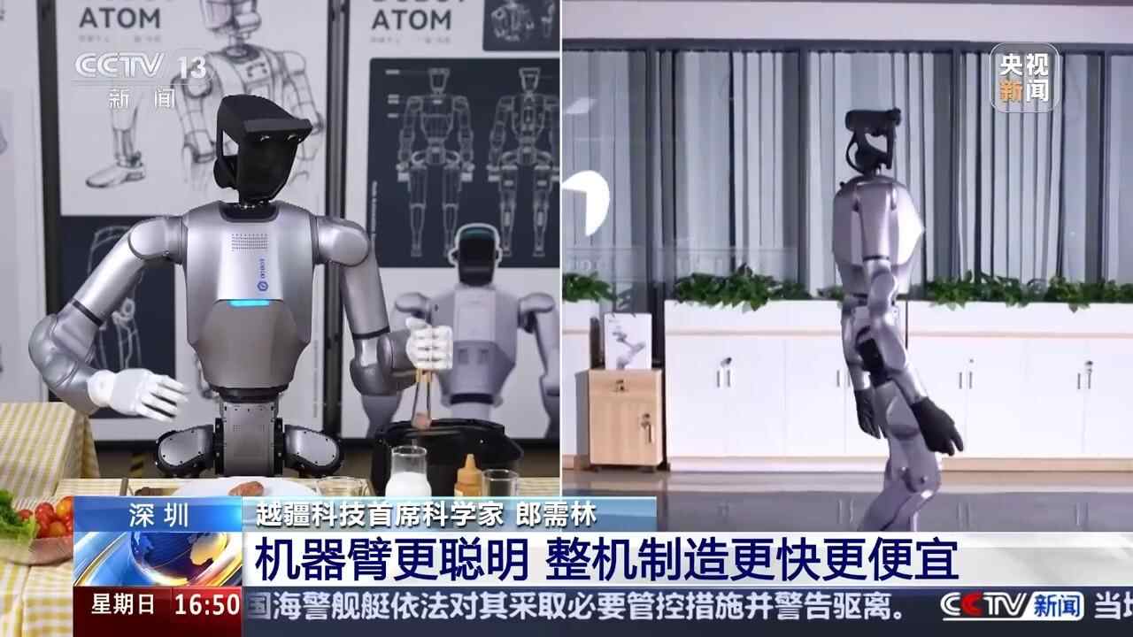 在深圳,围绕具身智能产业,关键零部件的创新和升级正在加速。记者来到深圳的一家协作机器人制造企业,他们生产的以机器臂为代表的协作机器人,已经在全球出货量累计超80000台,占据出口行业第一。一走进公司展厅,一个全新升级的具身智能机器人,就为我们表演了全套的迎宾工作,泡茶、递水,展示了机械臂精准操控与智能的结合。在另外一个实验室,记者还亲自体验了和机器人一起维修机器人。