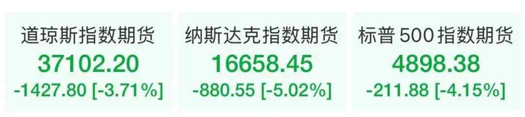 北京时间4月7日上午,美股三大指数期货再次崩盘。截至发稿,道指期货跌3.71%,纳指期货跌5.02%,标普500指数期货跌4.15%,VIX“恐慌指数”飙涨超50%。