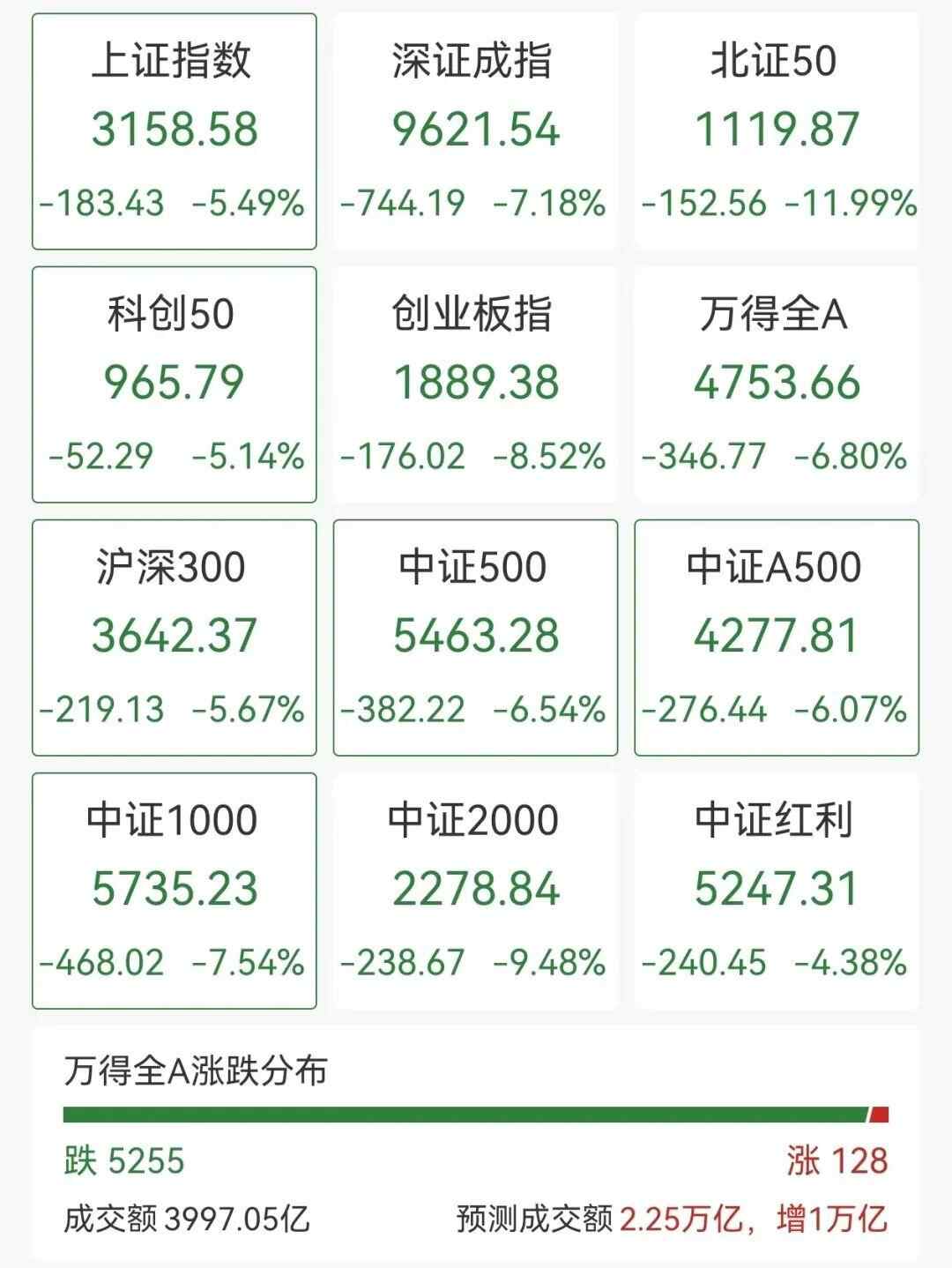 A股指数低开,创业板指下挫跌逾8%,再度回落至1900点下方,沪指跌5.5%,深成指跌超7%,目前沪深京三市约5200只个股下跌,近3000股跌超9%。