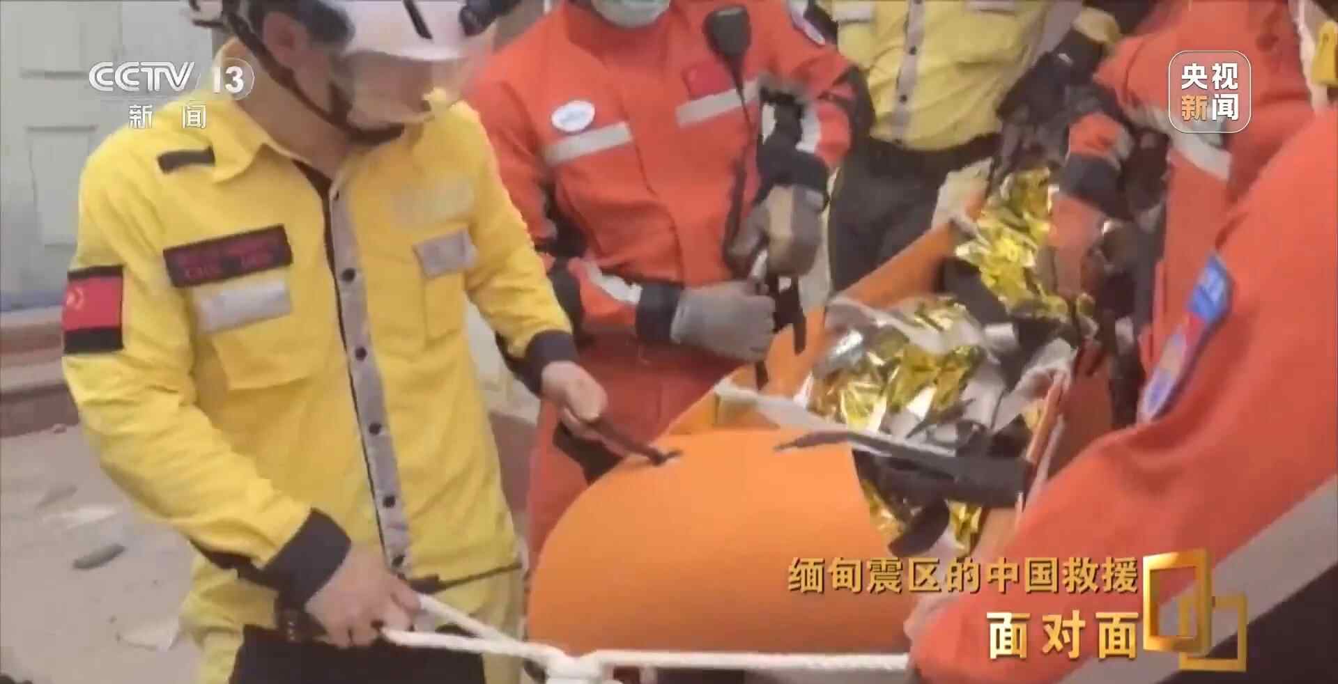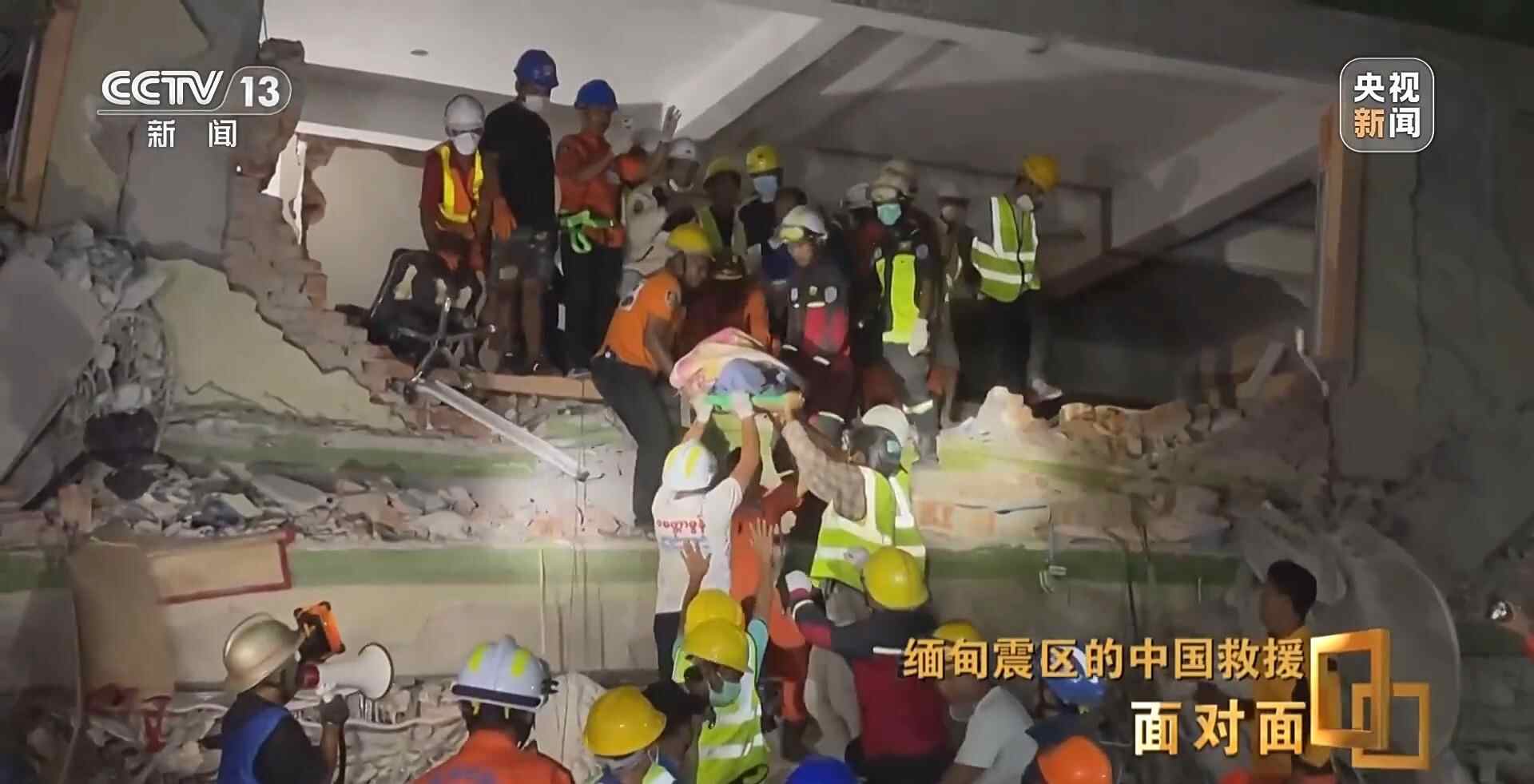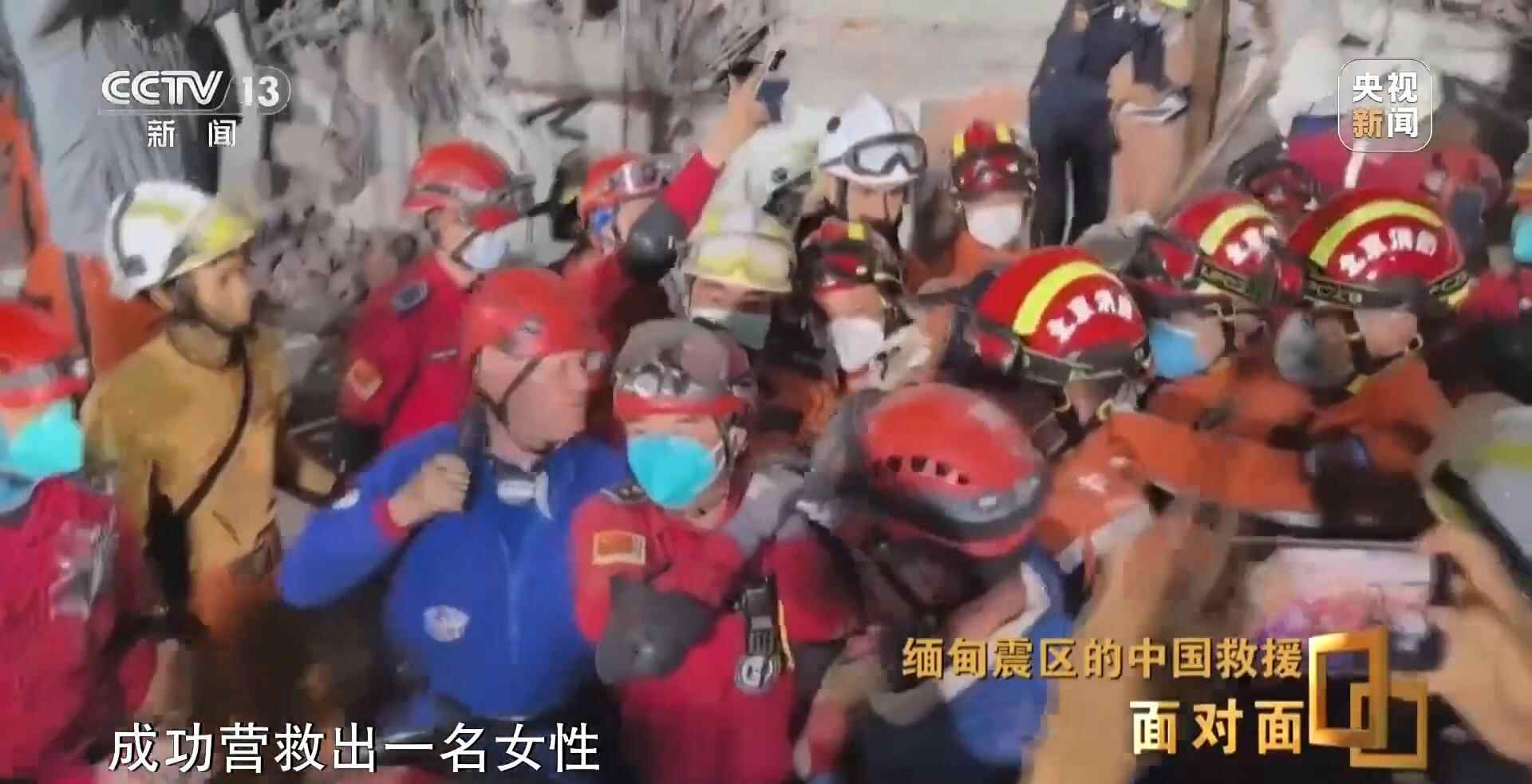 总台央视记者 张腾飞:在3月31日当地时间凌晨的零点四十分,我们现在是在曼德勒市的长城饭店救援点,在现场我们看到,经过5个多小时的努力,中国救援队是在这片废墟中成功营救出一名女性,目前她的生命体征良好,此前她在这里被困超过60个小时,这也是中国救援队抵达受灾最严重的曼德勒市成功营救出的第一名幸存者。