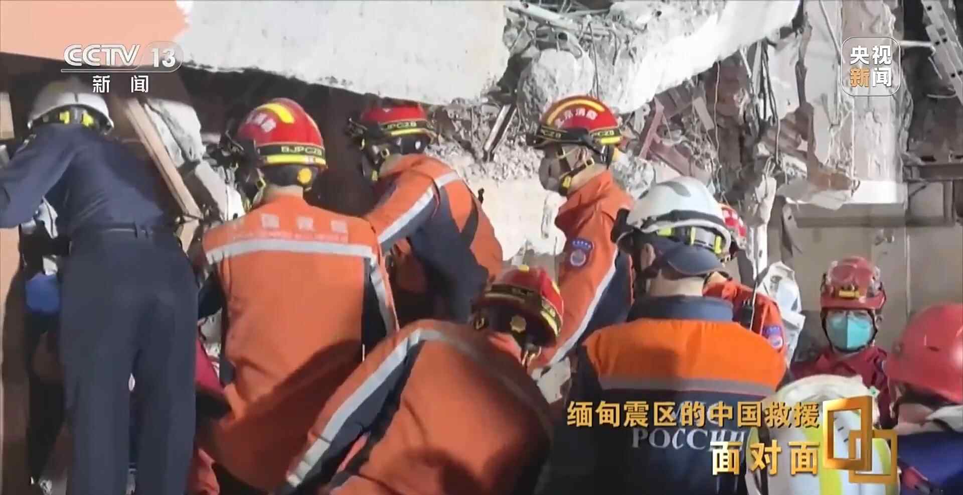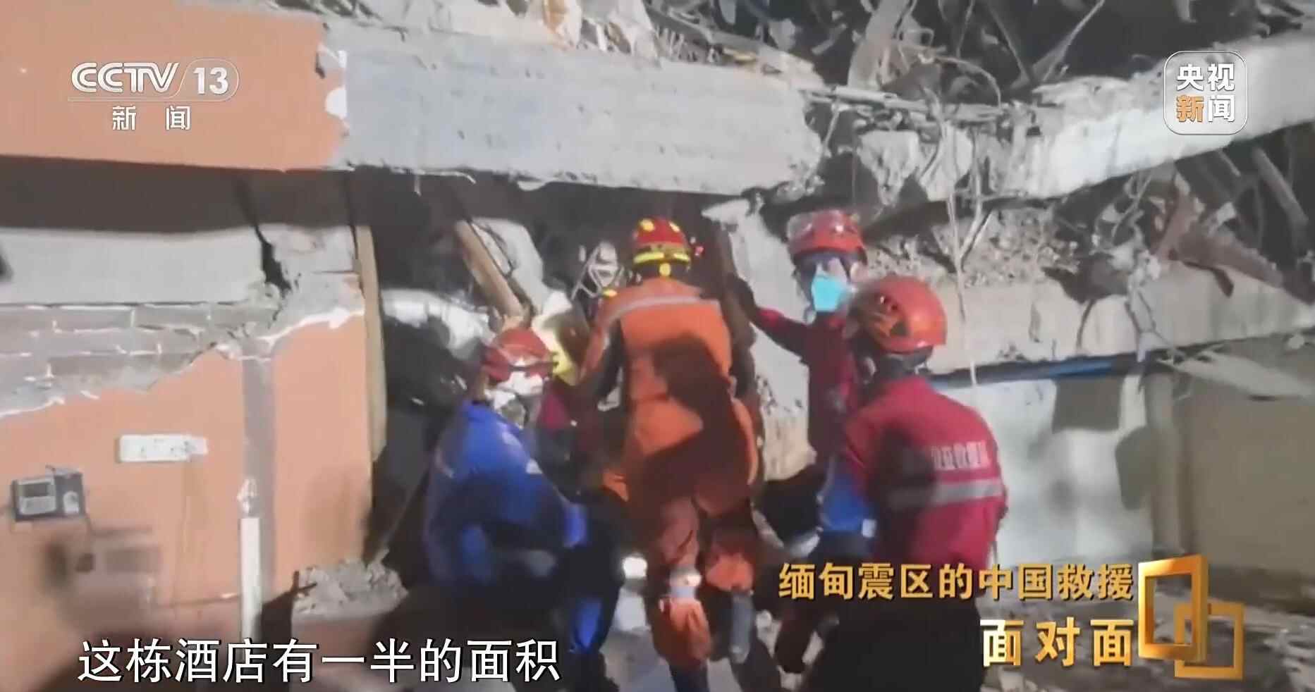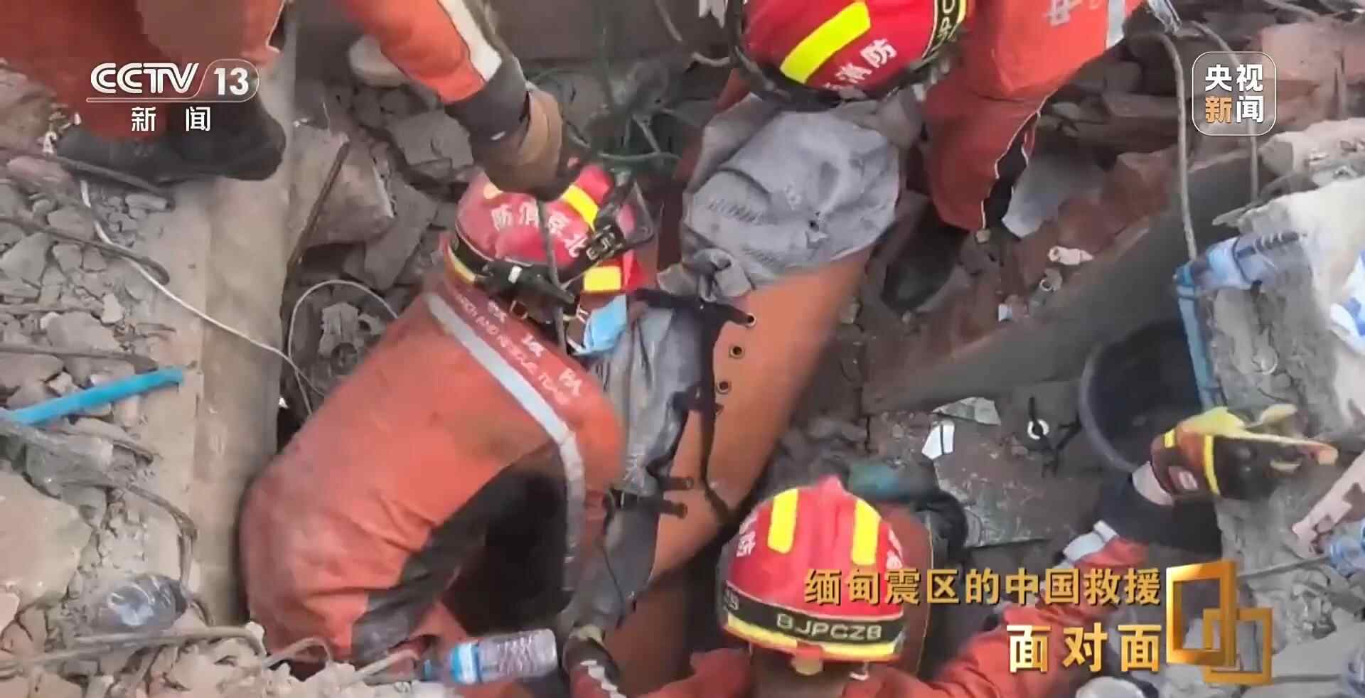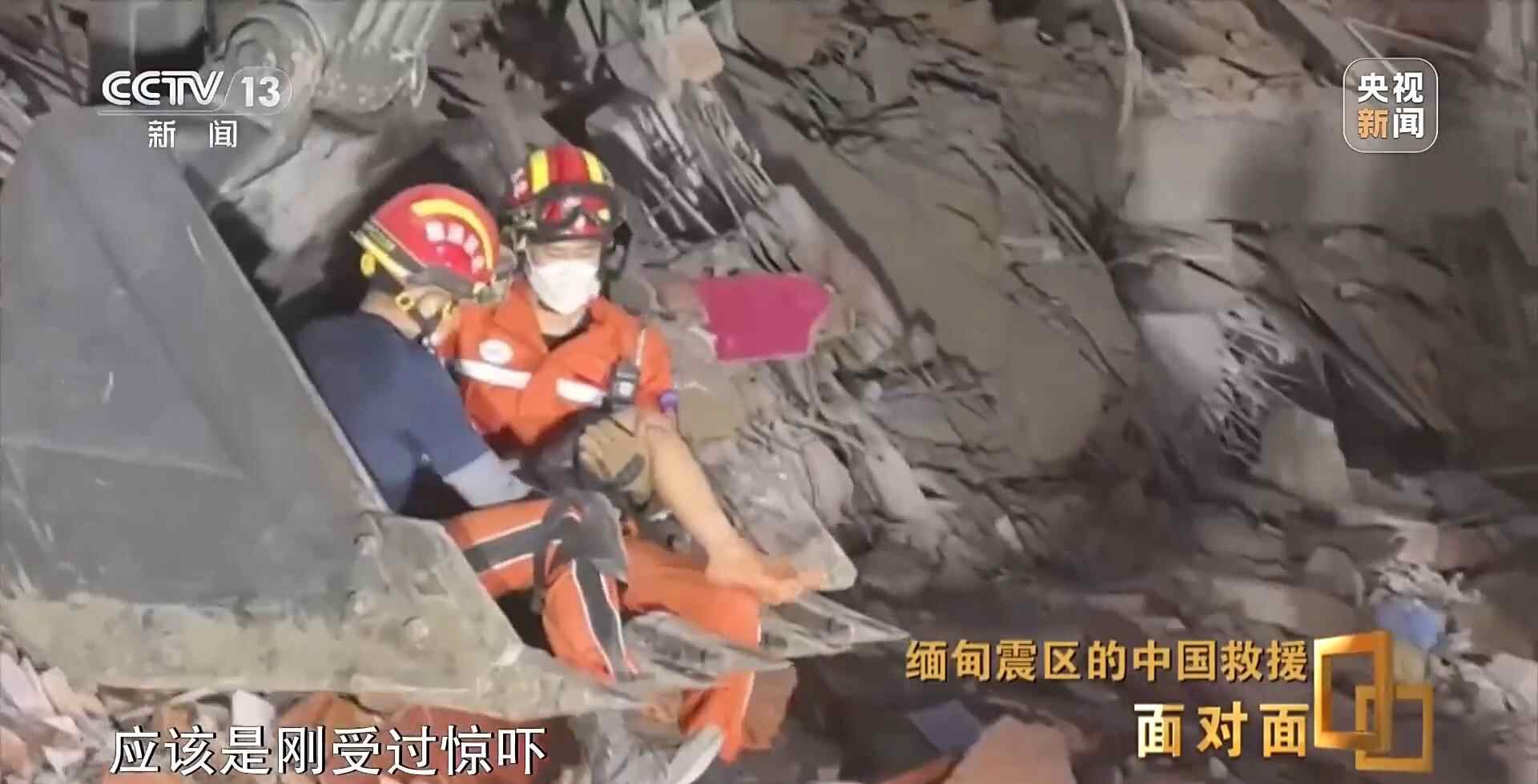 总台央视记者 张腾飞:在3月31日当地时间凌晨的零点四十分,我们现在是在曼德勒市的长城饭店救援点,在现场我们看到,经过5个多小时的努力,中国救援队是在这片废墟中成功营救出一名女性,目前她的生命体征良好,此前她在这里被困超过60个小时,这也是中国救援队抵达受灾最严重的曼德勒市成功营救出的第一名幸存者。