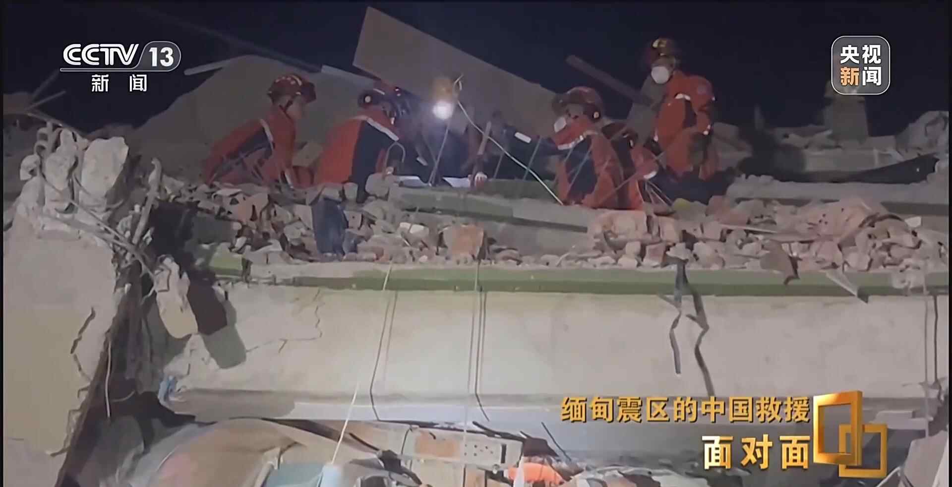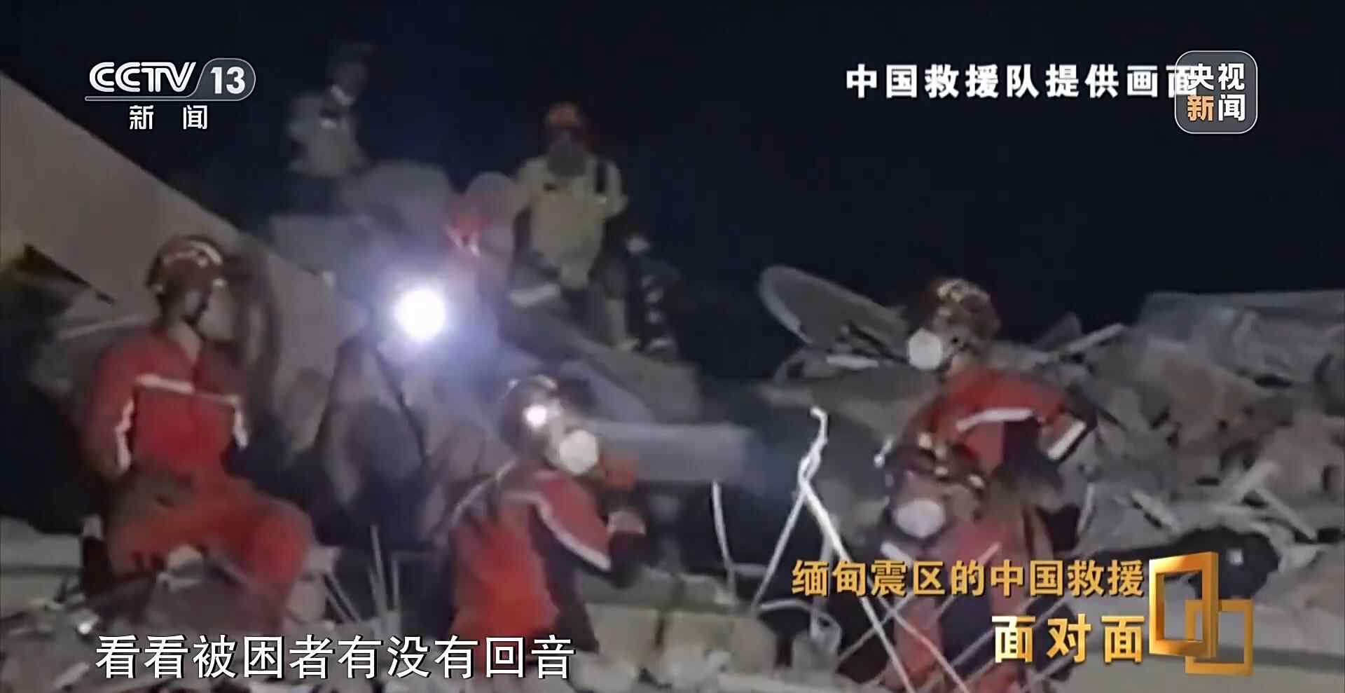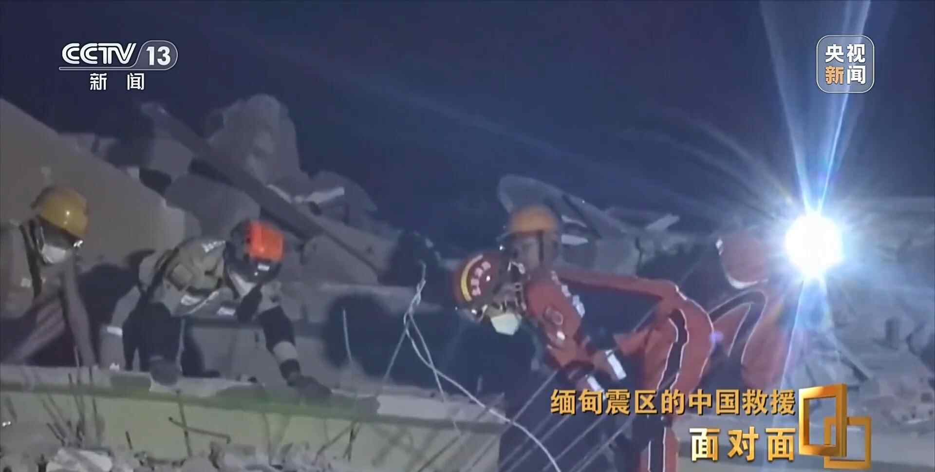 缅甸当地时间4月3日19时,利用救援间隙,《面对面》通过网络连线的方式采访了中国救援队队长赵明。