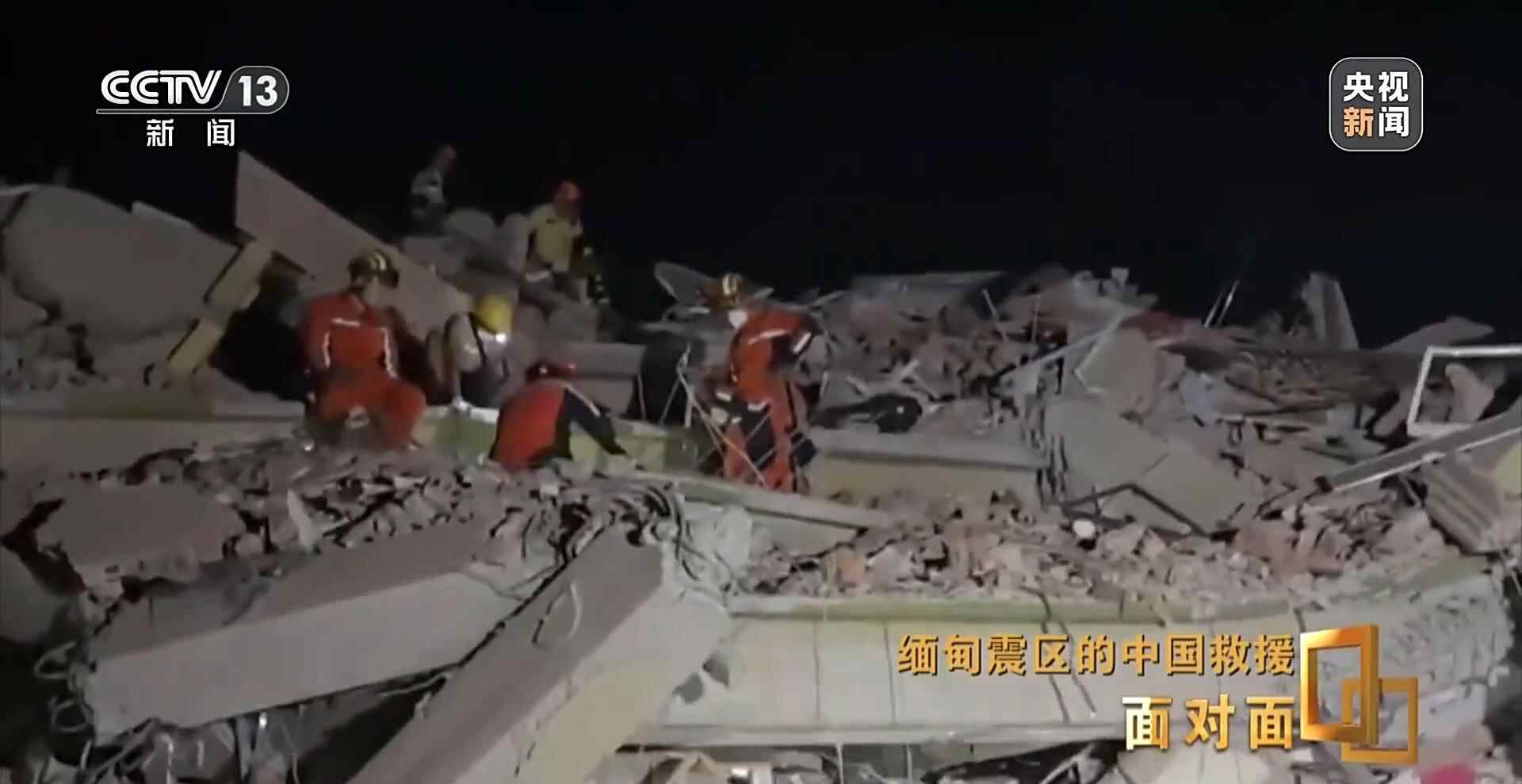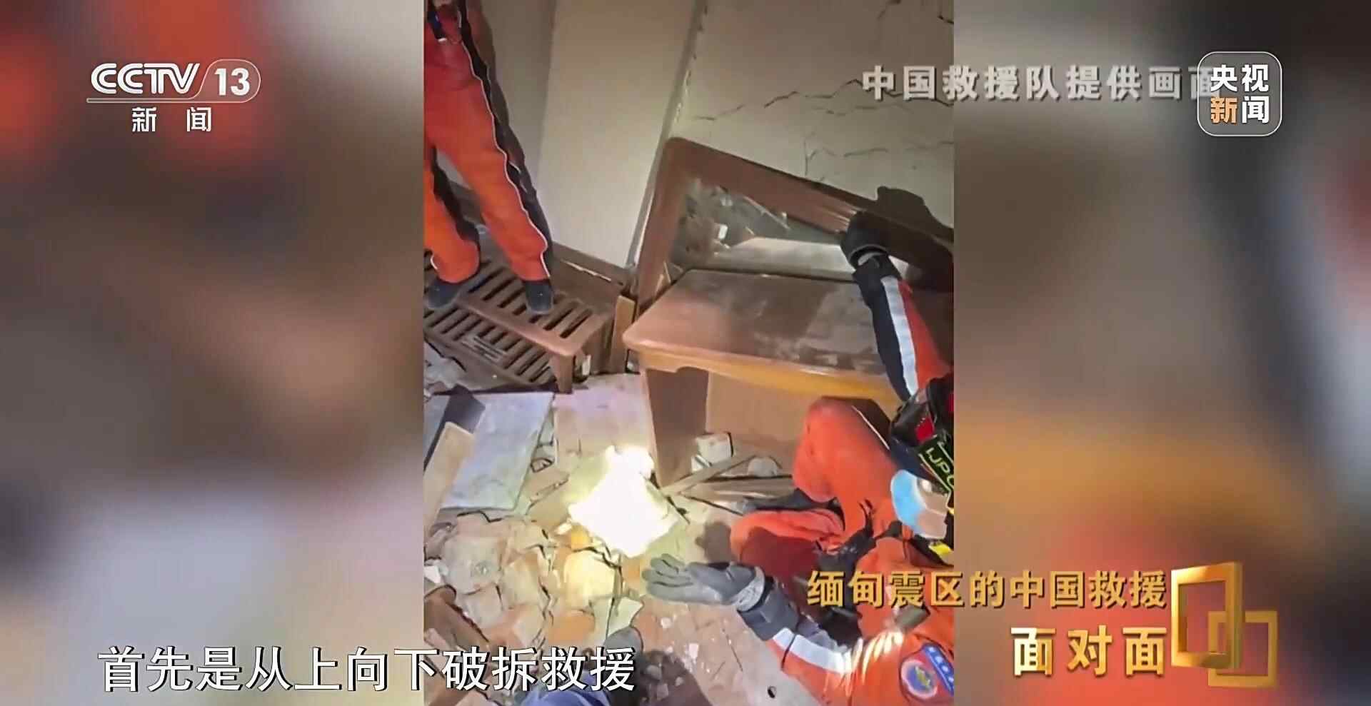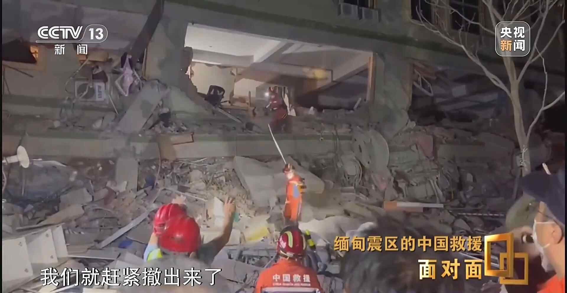 缅甸当地时间4月3日19时,利用救援间隙,《面对面》通过网络连线的方式采访了中国救援队队长赵明。