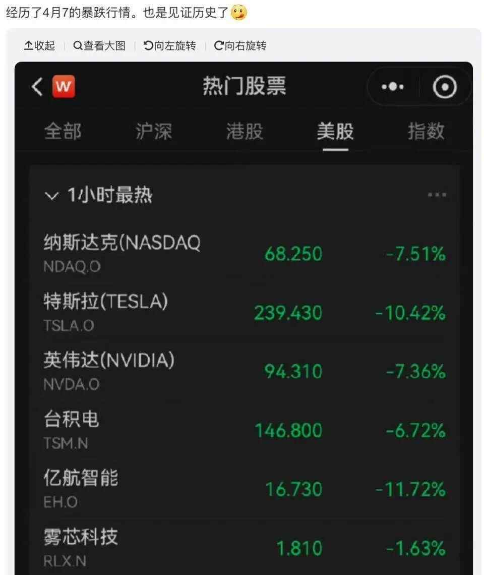 北京时间4月7日上午,全球金融市场巨震。相关话题持续冲上热搜!