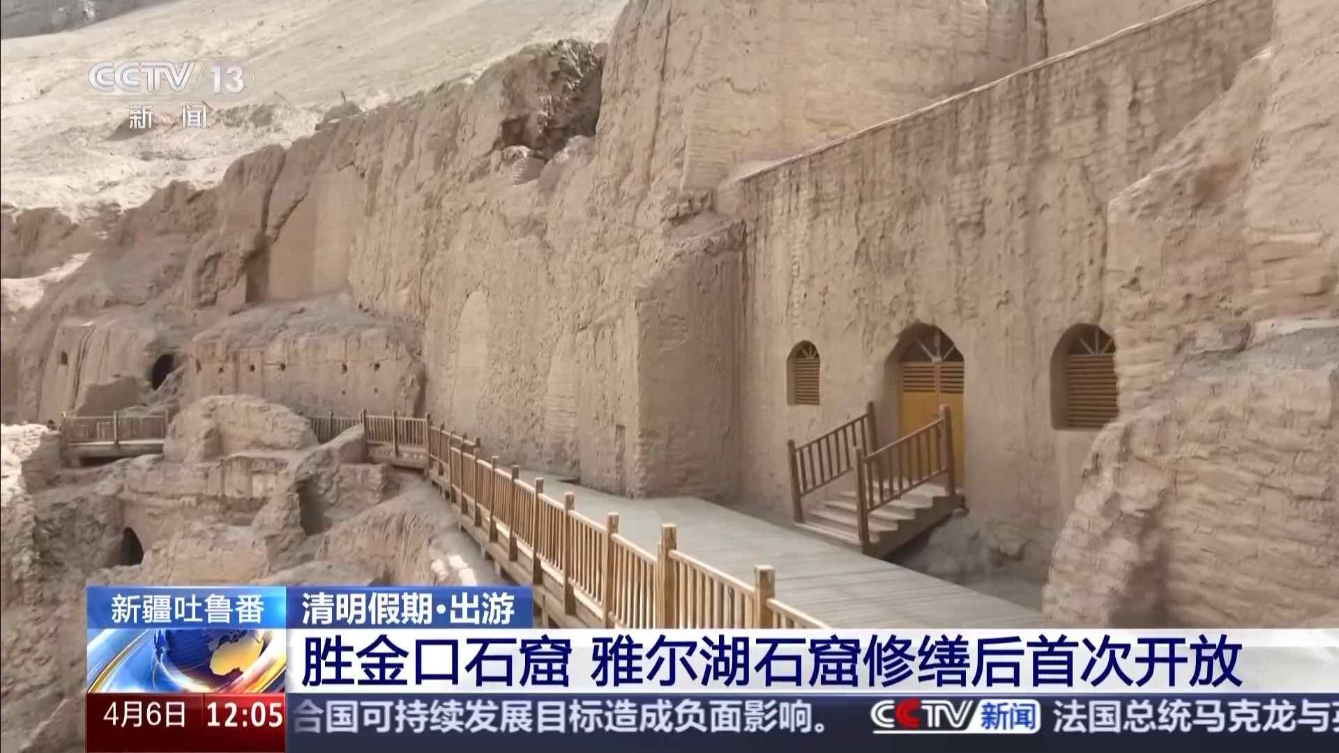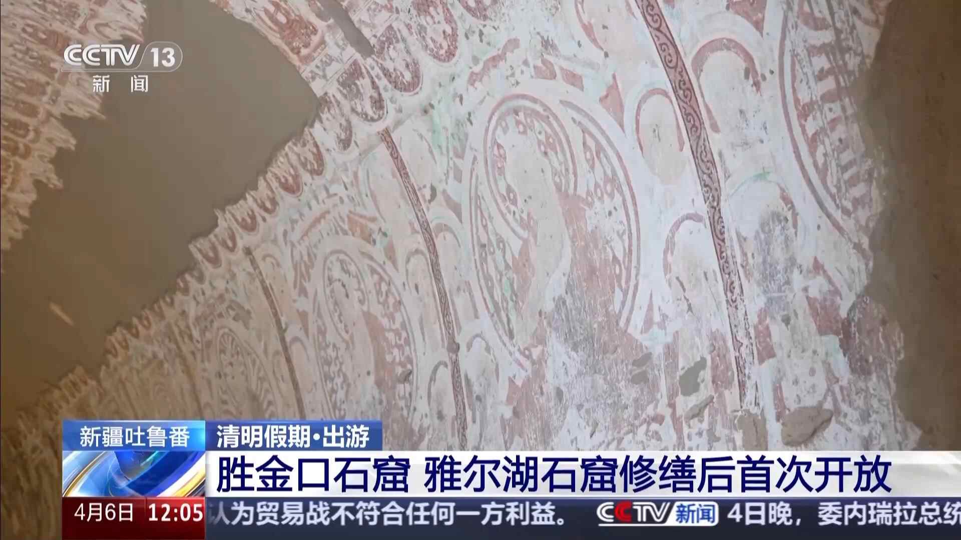 新疆吐鲁番市的胜金口石窟、雅尔湖石窟昨天起首次对外开放。胜金口石窟建于唐西州时期,共有13个洞窟,本次对外开放4个,壁画包含经变画、说法图等。