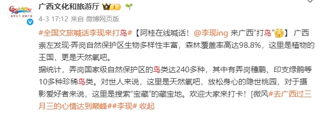 阿桂在线喊话:来广西寻宝藏鸟鸟吧