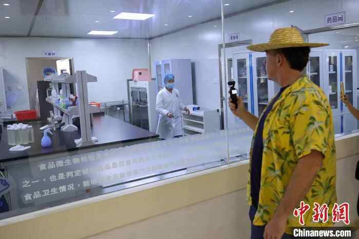 图为参加“侨”见海南自贸港主题活动的托米向同行的参访者介绍海南美食。 中新网记者 骆云飞 摄