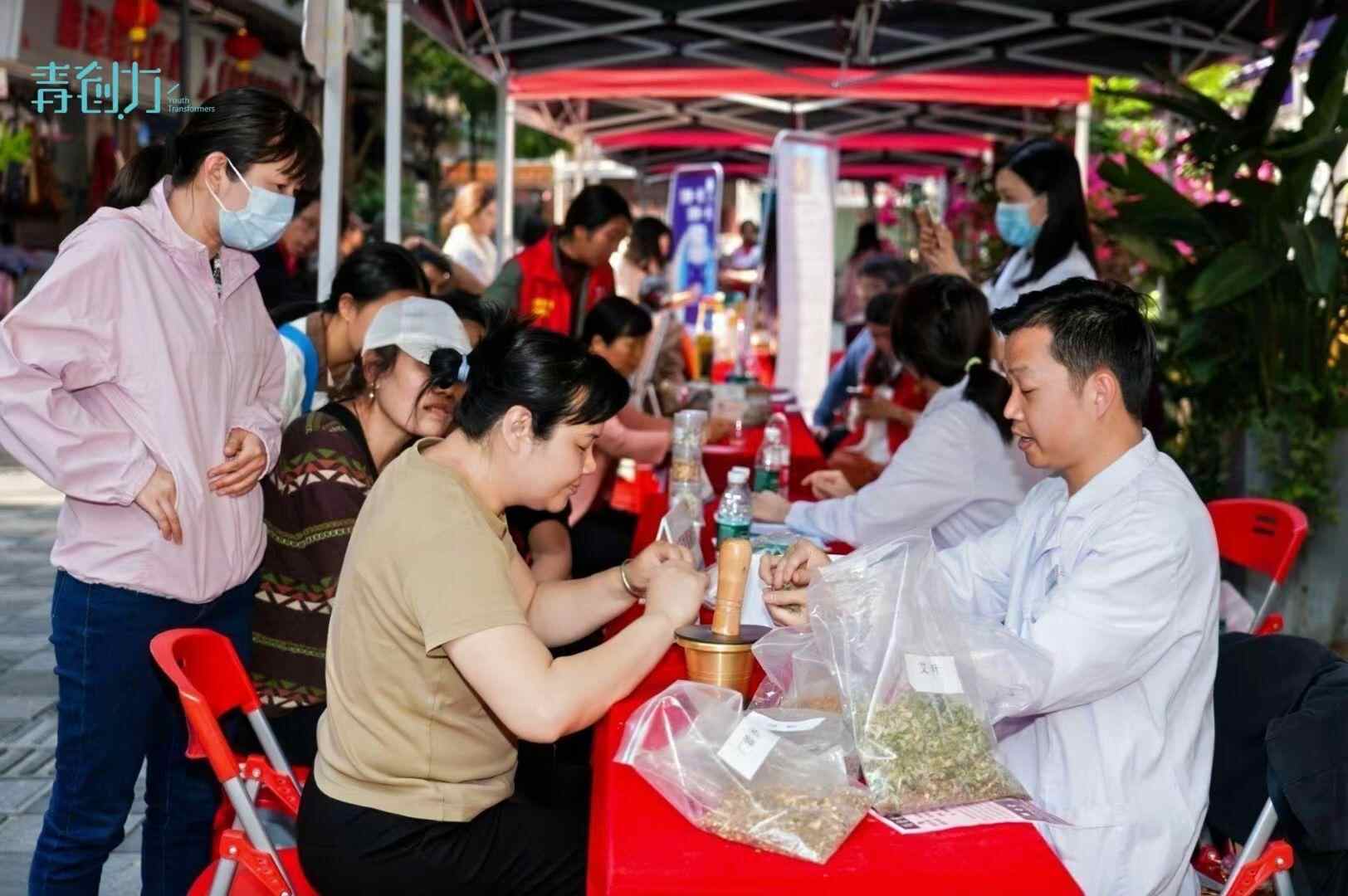 3月22日,“解忧养生局”中医文化集市再次来到盐运西社区。广东省第二中医院、广州市越秀区中医院和商圈内中医馆等组成强大的中医文化科普志愿团队,他们不仅为居民们提供中医便民服务和中医文化知识科普,还开设了中医文化课堂,让居民们在家门口就能享受到专业又有趣的中医服务。