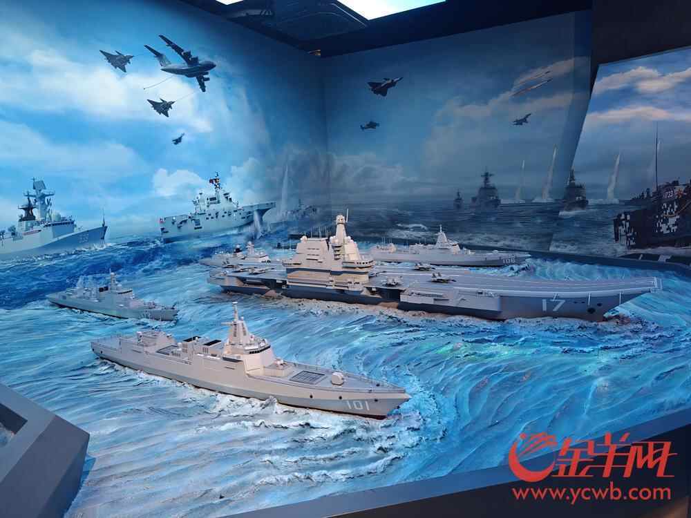 英雄广州风霜千年,赤色依旧;大国重器剑藏于鞘,外露其锋。展馆中,“科技强军”展区以80余件装备模型呈现国防现代化进程:山东舰航空母舰战斗群模型以磅礴阵列震撼全场,展现中国海军从近海防御向远洋作战的战略转型;展厅上空,由歼-20隐身战斗机等国产新型战机组成的空中编队模型呼啸而过,彰显新时代航空工业的雄厚实力;射程达1.4万公里的东风-41洲际导弹模型与乘波体气动外形的东风-17高超音速导弹模型,则共同构筑起多层次的战略打击体系。