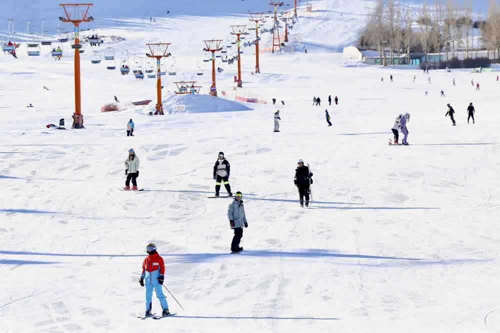 1月27日,雪友在新疆丝绸之路山地度假区滑雪。