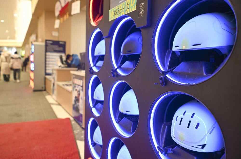 这是2月22日在新疆丝绸之路山地度假区东区雪具大厅拍摄的一款供雪友组队通话的共享语音头盔。雪友个性化的需求催生出多样冰雪市场机遇。