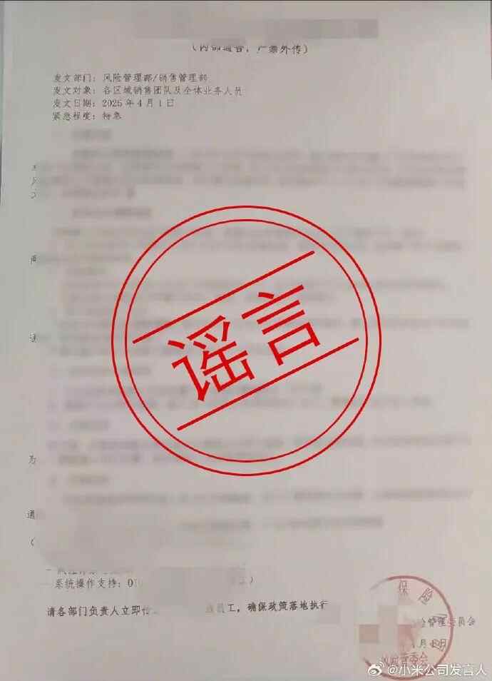 4月7日晚,@小米公司发言人 进行辟谣澄清,全文如下: