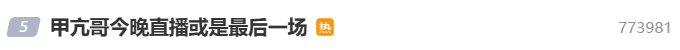此外,今日稍早时候,“甲亢哥”在直播中透露,今晚直播或是最后一场。