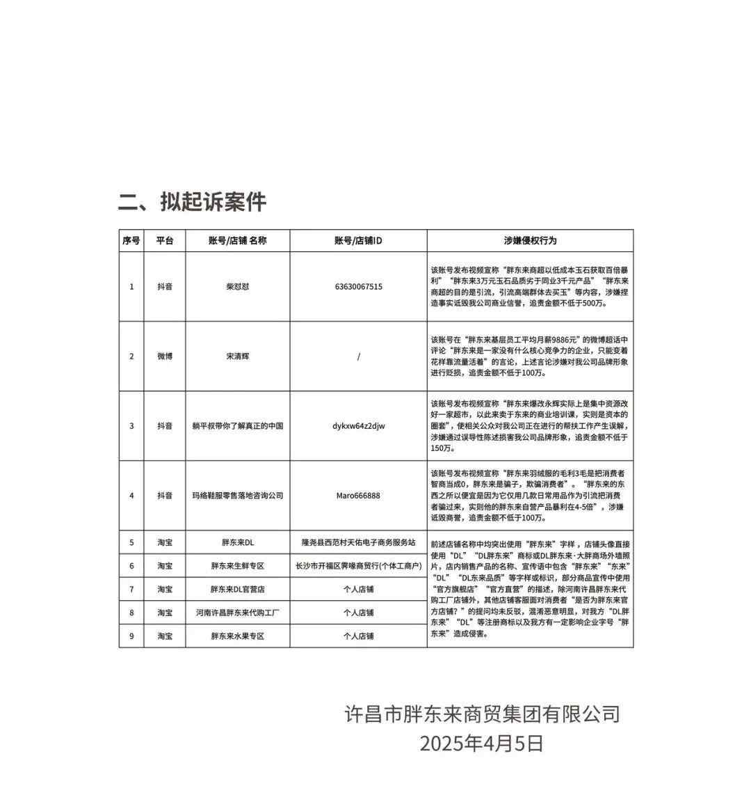同时,胖东来在调查报告中提到结合其发表的视频引起的社会关注及影响,涉嫌严重侵犯公司名誉权,对于任何侵害胖东来公司名誉、商誉等合法权益的行为,胖东来法务将坚决依法维权。综合评估胖东来品牌价值及社会影响力,对于严重侵权的行为,原则上追责金额不低于100万元。