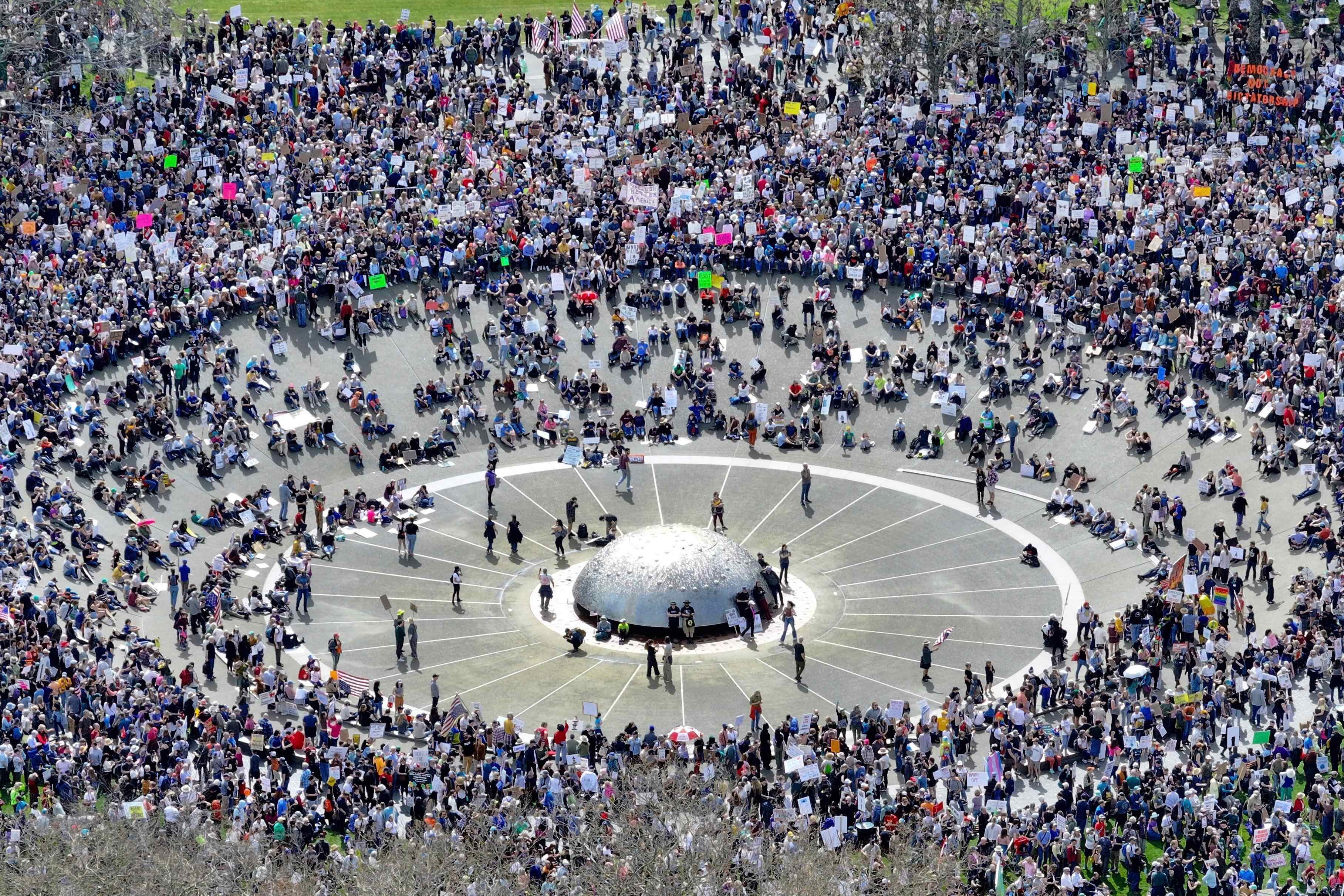 在阴沉的天气中,人们冒着小雨涌到华盛顿纪念碑周围的大片草地上。示威组织者告诉路透社,预计将有超过2万人参加在国家广场举行的集会。