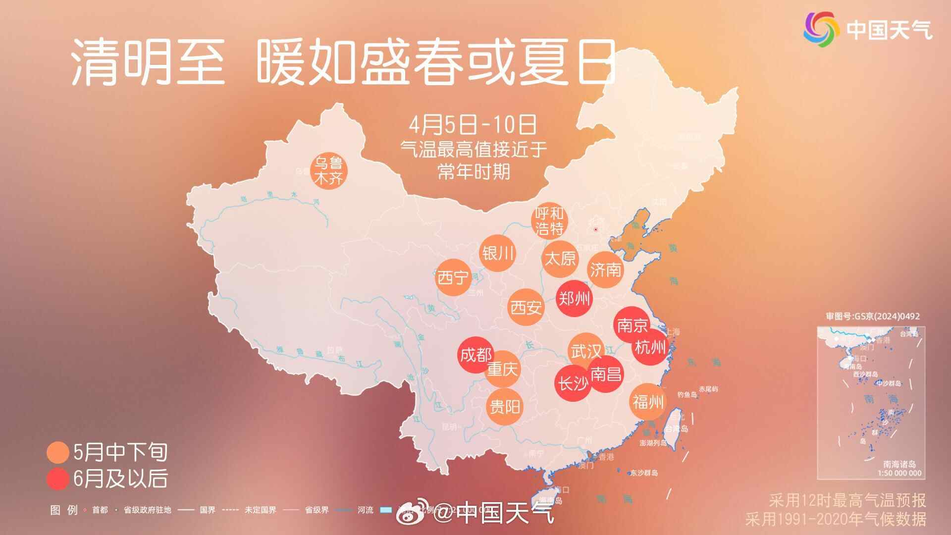 预计未来10天,回暖依旧是大势所趋,多个省会首府直辖市的气温最高值或相当于常年5月中下旬。不过受冷空气和阴雨天气影响,气温仍有波动起伏。