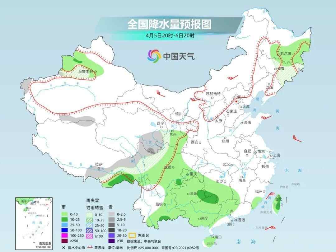 而在北方,受冷空气影响,未来三天内蒙古东北部、东北一带还有可能出现小雨雪或雨夹雪,局地或现中雪。其中,今天白天,雨雪范围最广。