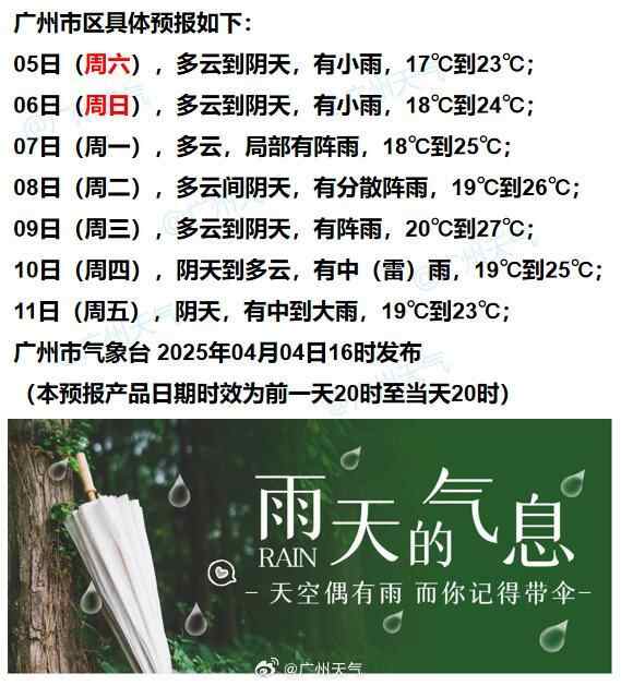 广州方面,白天没有sunny哥+有雨,体感上会凉一点,下周后期雨水逐渐明显,请保持关注。