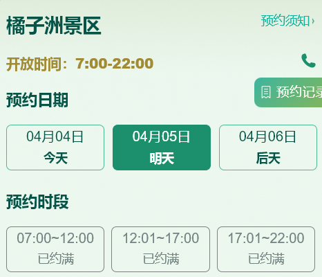 长沙橘子洲景区:清明假期前两日门票已经约满,景区提醒未预约不前往。