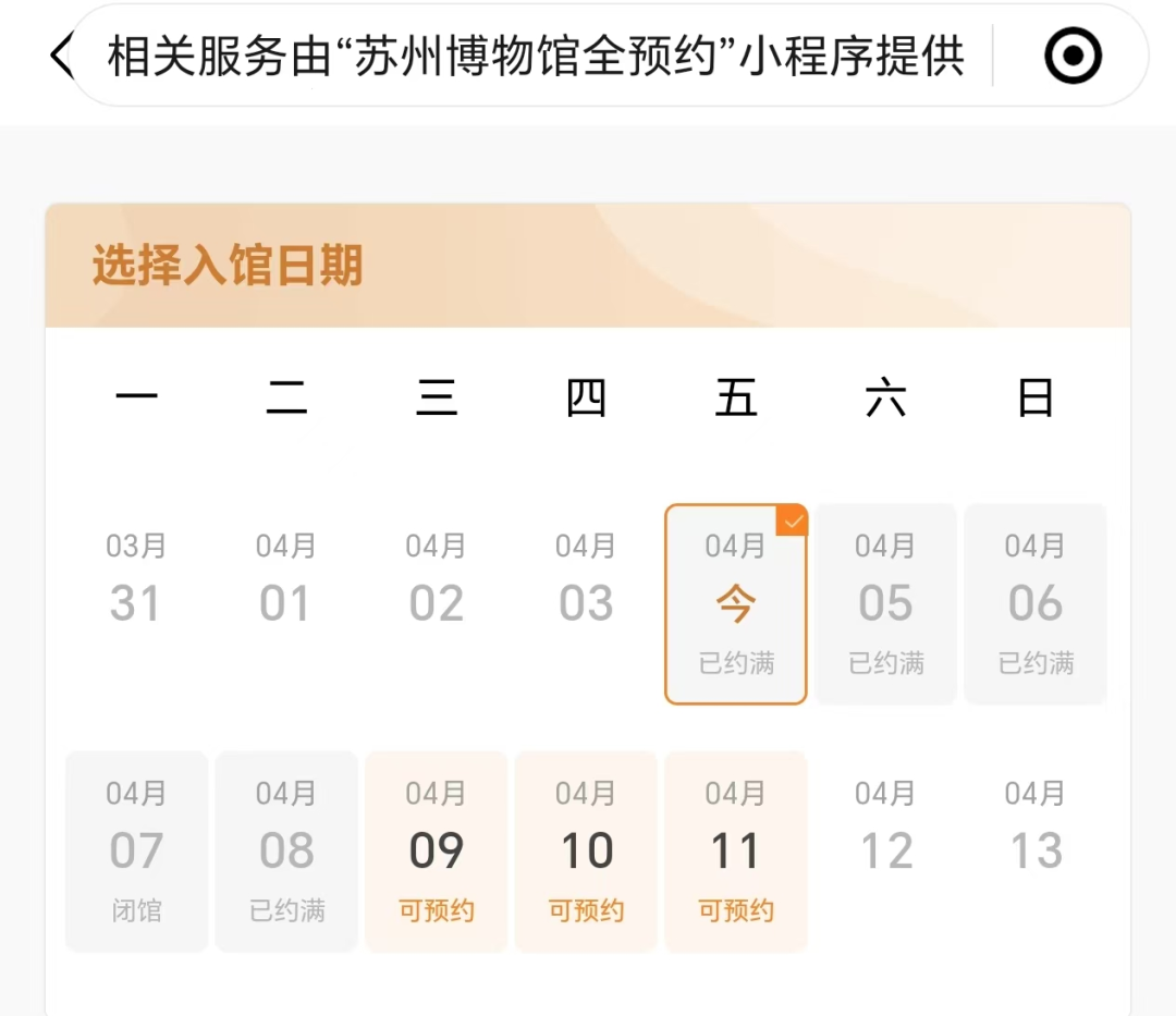 此外,苏州博物馆新馆从4月4日至4月8日均已经约满。