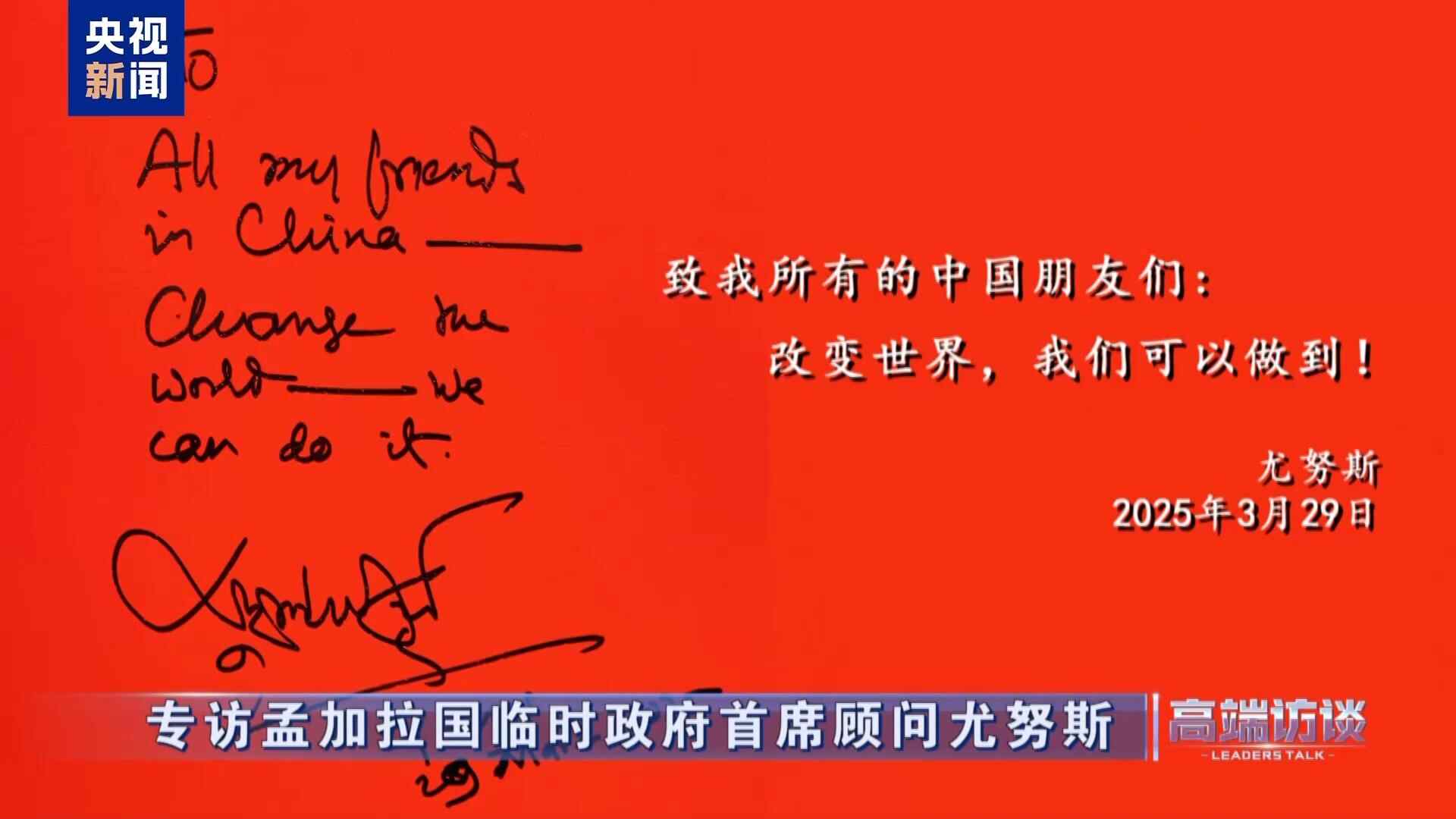 △孟加拉国临时政府首席顾问尤努斯在接受总台专访后题词
