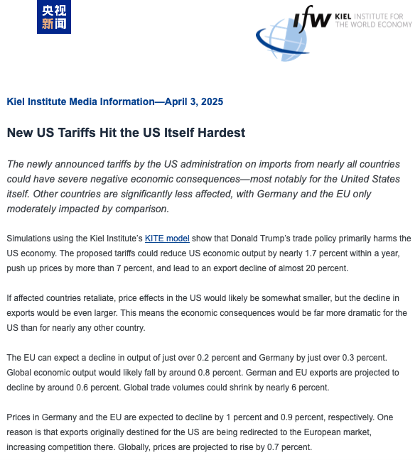 △德国基尔世界经济研究所4月3日发布的报告截图