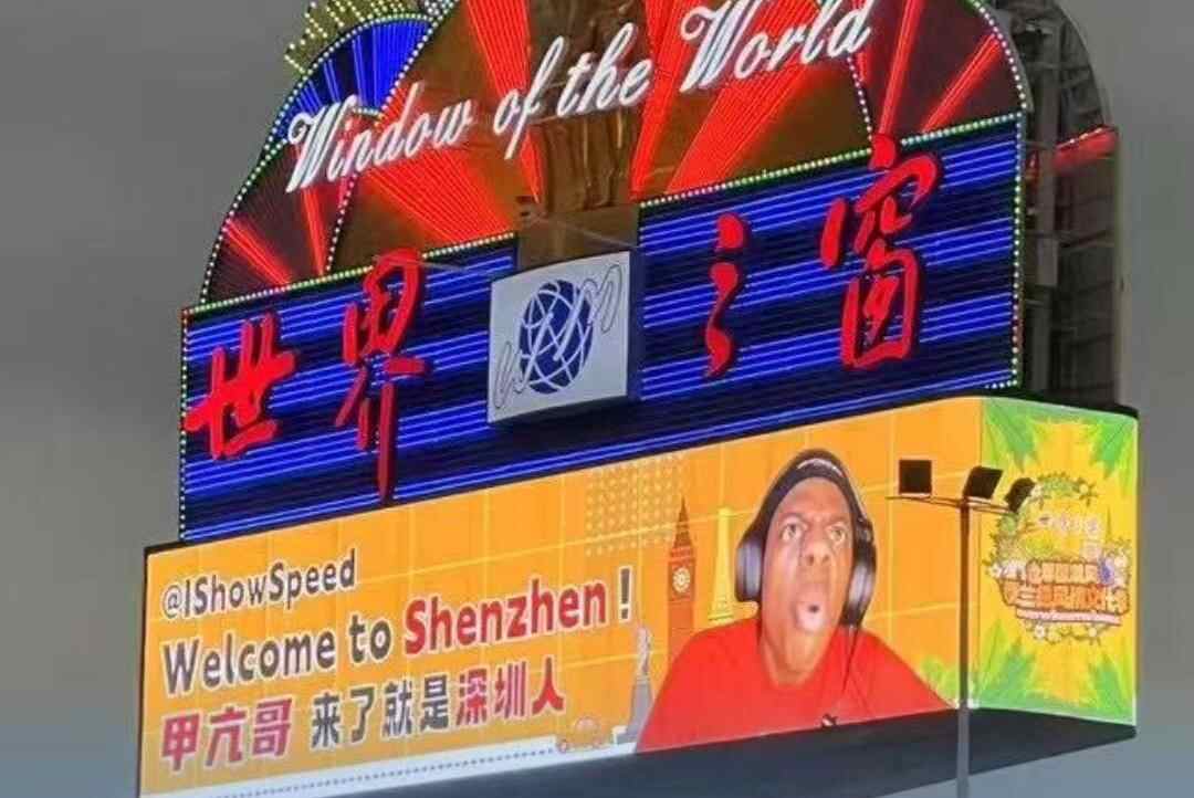 4月5日,美国网红“甲亢哥”开启深圳之旅,“甲亢哥,来了就是深圳人”,深圳世界之窗广告牌亮灯欢迎美国网红@ishoespeedsui 到访深圳。