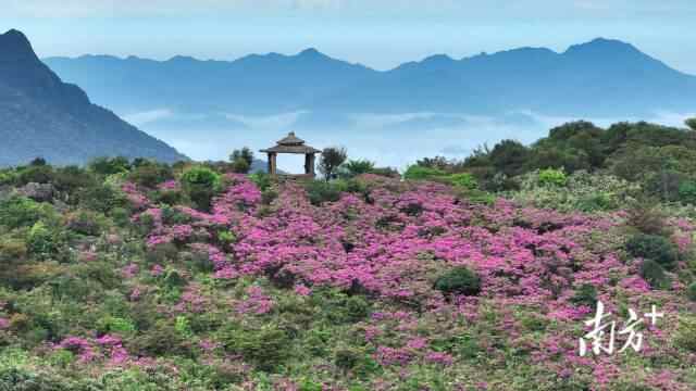 潮州凤凰山山顶的杜鹃花竞相开放,与茶山云海共绘春日盛景。
