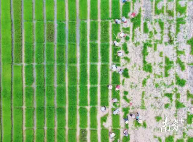 阳江市农科所在白沙试验场进行省水稻区域试验早造插秧工作。南方+拍客 关巧明 摄