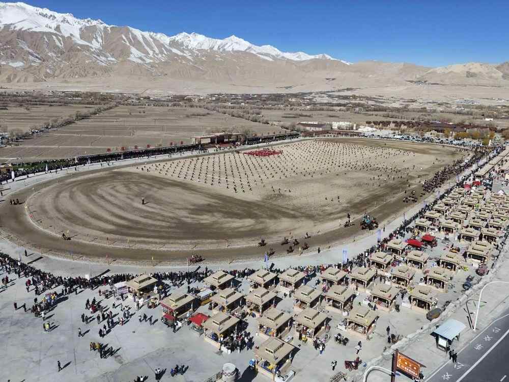 新疆塔县春季文旅活动在提孜那甫乡赛马场举行(2025年3月23日摄,无人机照片)。新华社记者 胡虎虎 摄