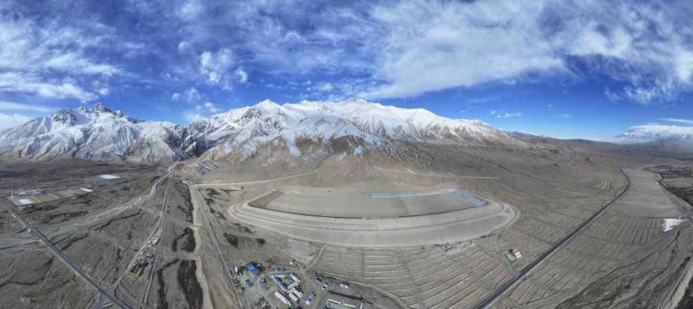 建设中的阿然保泰水库(2025年3月30日摄,无人机全景照片)。新华社记者 胡虎虎 摄