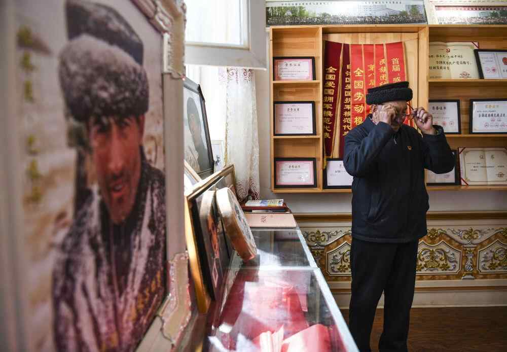房屋前厅是拉齐尼纪念馆,里面展陈着一家三代戍边的照片、荣誉奖章、巡边用品。自拉齐尼牺牲以来,前来参观瞻仰的人不计其数。前些年,我们就碰到过好几拨参访的团队。这次因时间略晚,没有更多访客,恰是难得的清净时机。