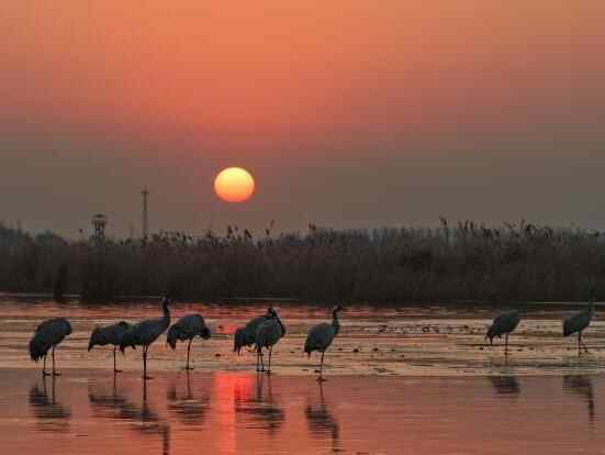 “京津冀最美湿地”衡水湖:冰封鹤舞迎新年