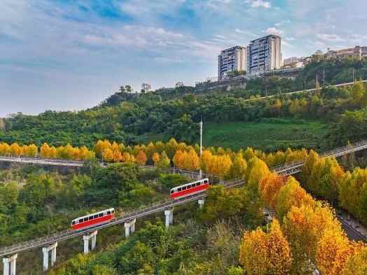重庆:缆车穿梭梧桐林绘就一幅浪漫“油画”