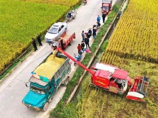 广西平南晚稻开镰收割 机械化助力丰产增收