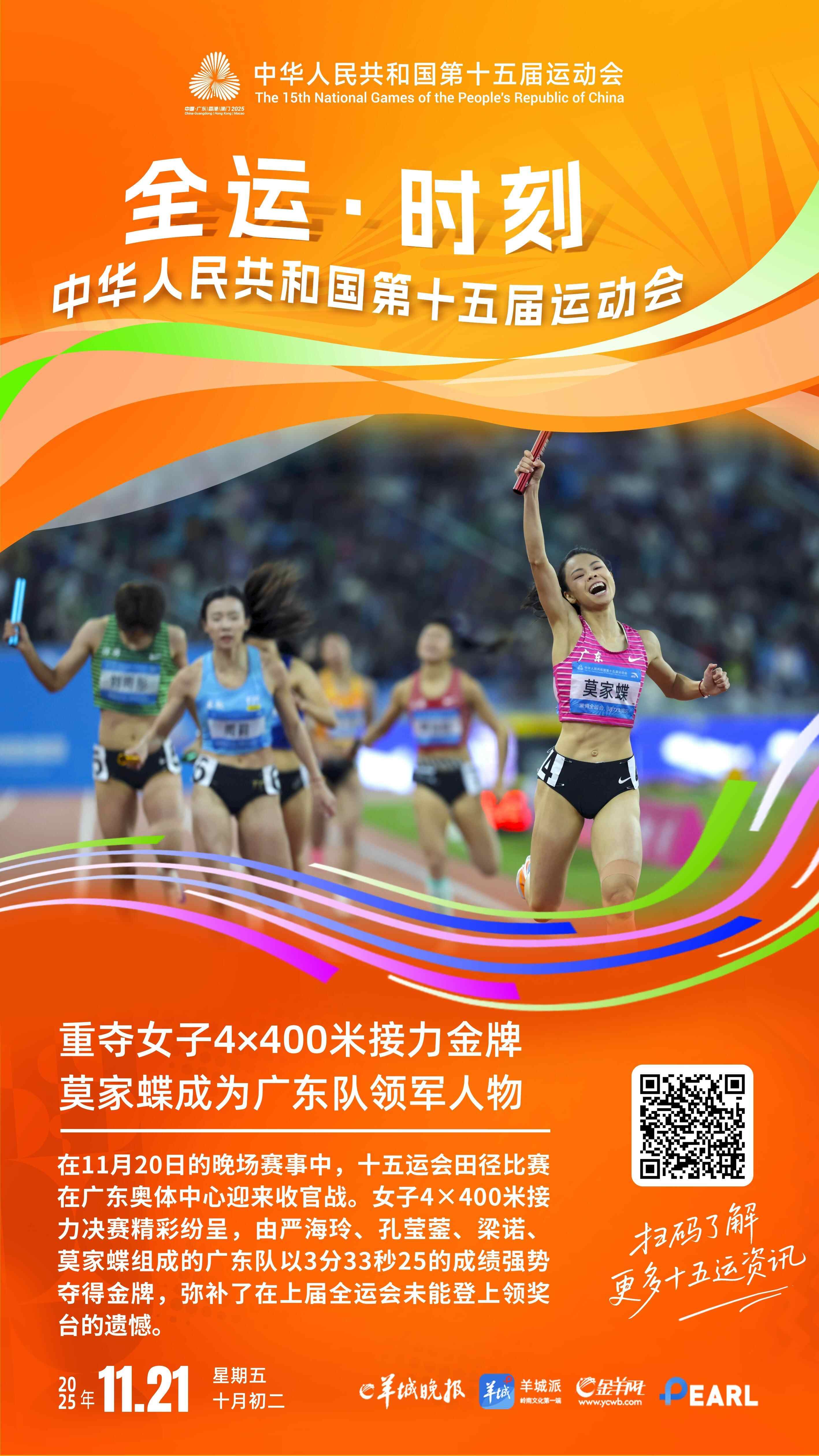 全运·时刻丨重夺女子4x400米接力金牌 莫家蝶成为广东队领军人物