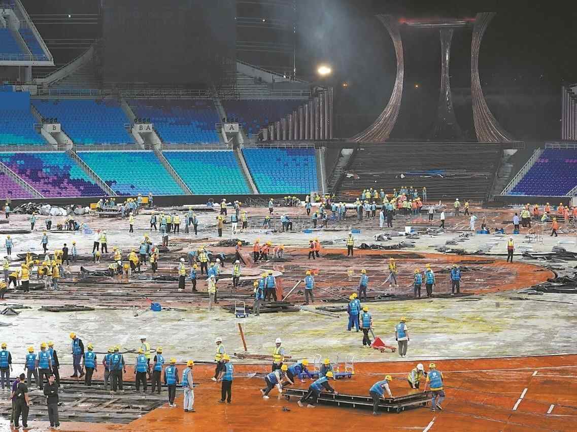 十五运会开幕式结束后,广东奥体中心只用了近30个小时就完成了转场工作,创下全运会转场新纪录。