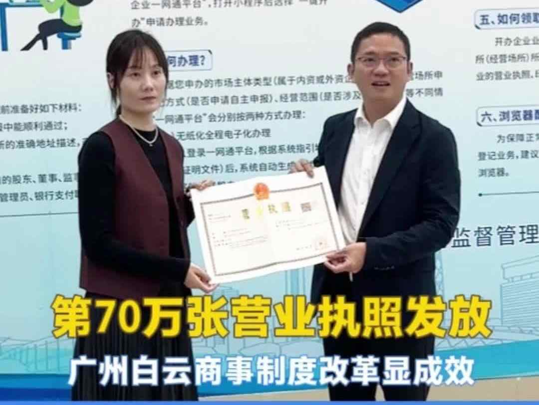 第70万张营业执照发放!广州白云商事制度改革显成效