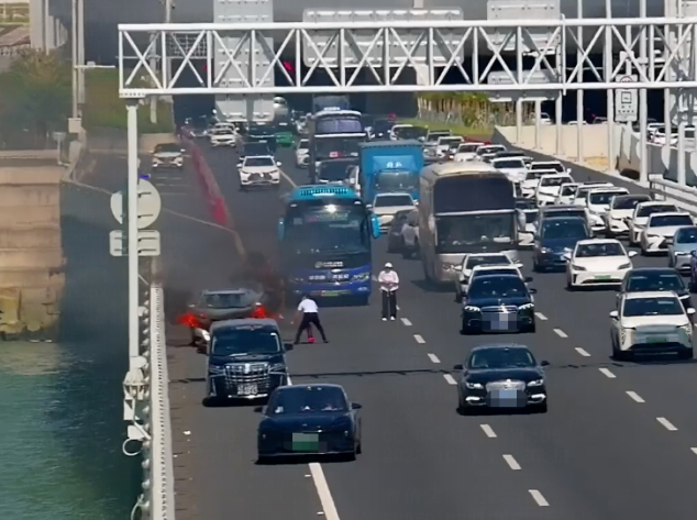 一轿车在深中通道上燃起大火,接下来发生暖心一幕
