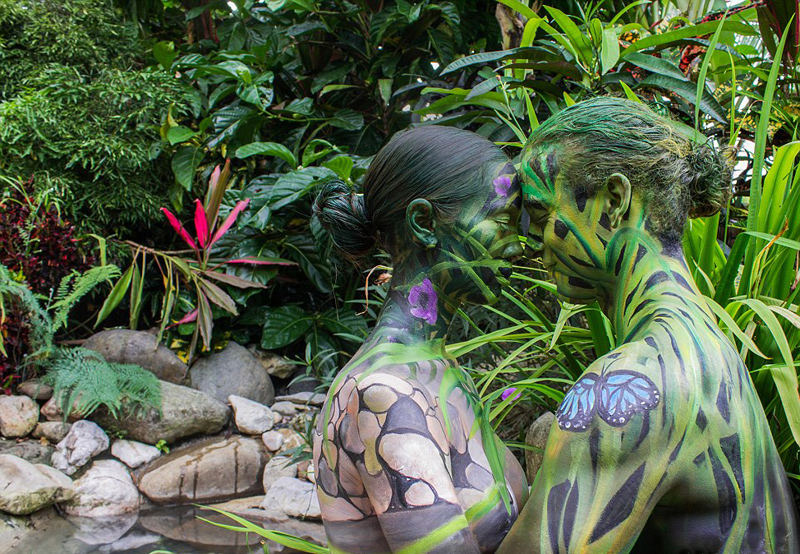 艺术家彩绘情侣融入自然 上演浪漫隐身术
