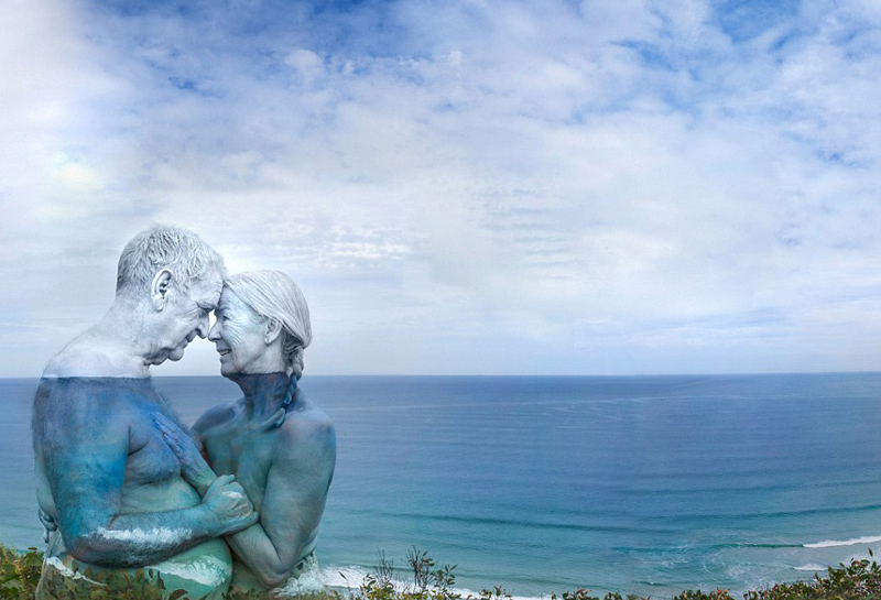 艺术家彩绘情侣融入自然 上演浪漫隐身术