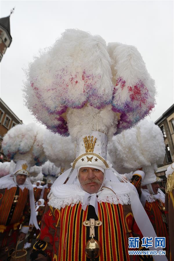 2月28日,在比利时南部小镇班什,装扮成班什狂欢节“憨人”形象、头戴鸵鸟毛帽子的当地居民参加盛装巡游。当日的“憨人”盛装巡游是2017年比利时班什狂欢节的最后一天,也是高潮部分。起源于中世纪的班什狂欢节寓意辞旧迎新,并于2003年11月被列入联合国教科文组织非物质文化遗产名录。“憨人”在班什狂欢节上是吉祥与快乐的代言人,也是最具标志性的形象。新华社记者叶平凡摄