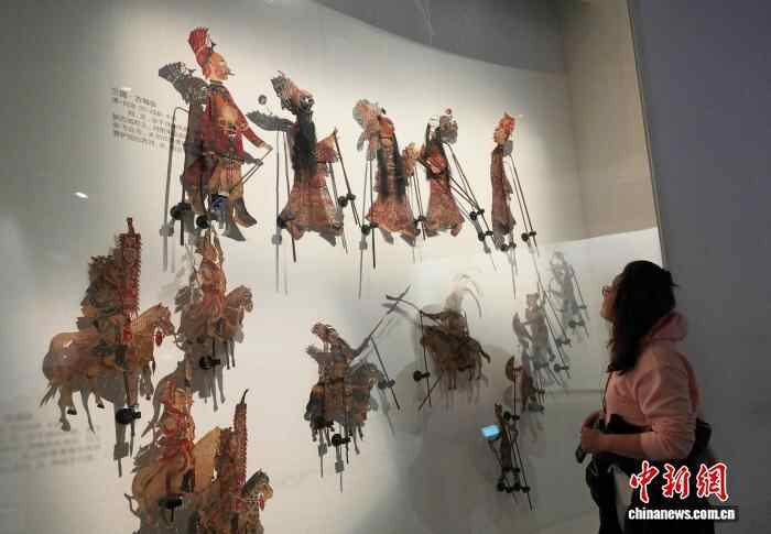 1月1日,成都博物馆前来参观的市民、游客络绎不绝,大家有序参观,在浓浓的文化氛围中度元旦假期。图为民众在成都博物馆参观《中国皮影木偶展》。中新社记者 安源 摄