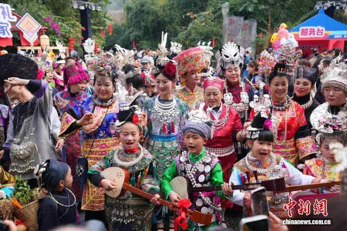 12月20日,在素有“侗乡第一寨”美誉的贵州省黎平县肇兴侗寨,身着民族盛装的侗族同胞与游客一起欢度侗年。侗年是侗族同胞团圆、庆贺丰收的节日,像汉族过春节一样热闹,当地开展民族团结大巡游、“村舞”斗舞大会、芦笙赛、长桌宴等特色活动,吸引众多游客前来旅游体验。龙建睿 摄
