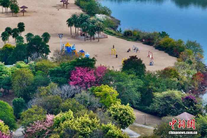 12月19日,福建福州,市民在沙滩公园游玩。近日,福州冬日暖阳,不少市民前往公园慢跑、散步,享受着暖冬里的休闲时光。(无人机照片)中新社记者 王东明 摄
