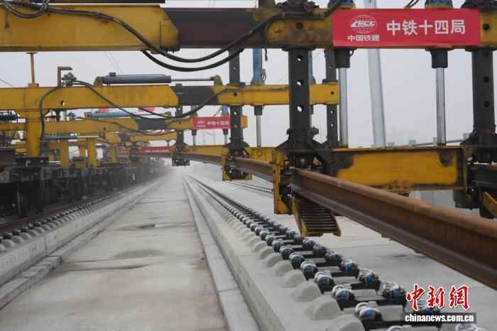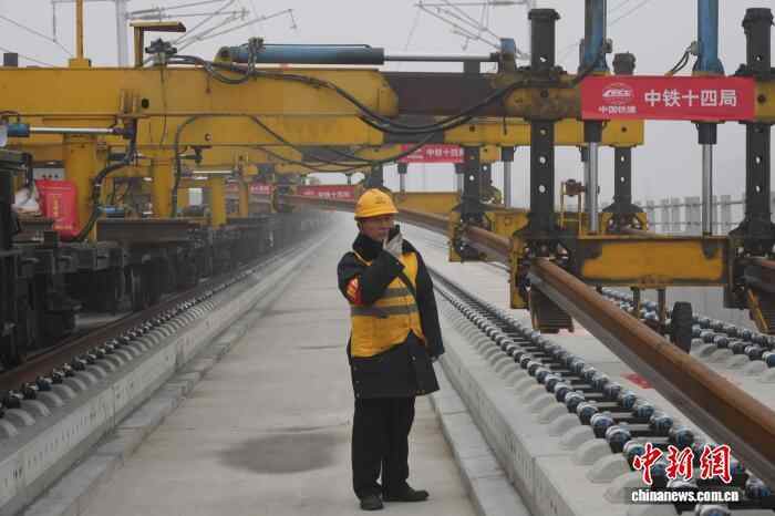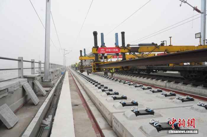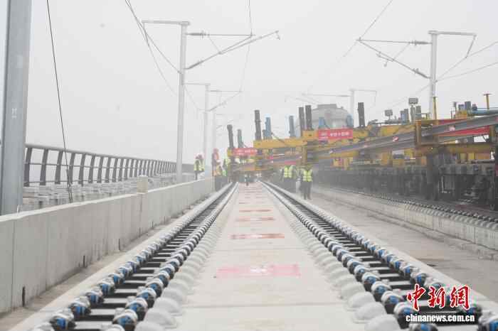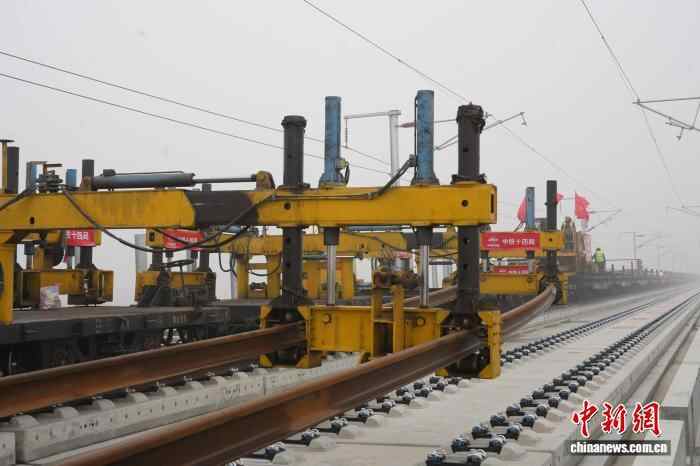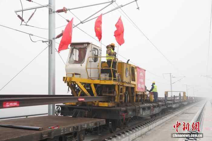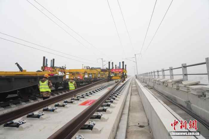 图为京港高铁雄商段铺轨施工现场。石宇恒 摄