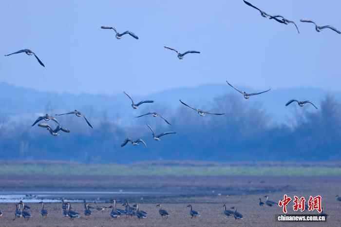 12月25日,位于安徽省池州市的升金湖国家级自然保护区迎来大批越冬候鸟。它们或觅食休憩、或展翅飞翔,构成一幅灵动的生态画卷。作为“东亚—澳大利西亚”候鸟迁徙线上的重要“驿站”,该湖每年吸引数万只候鸟在此停歇越冬。图为成群的候鸟在滩涂上翔集。中新社记者 韩苏原 摄