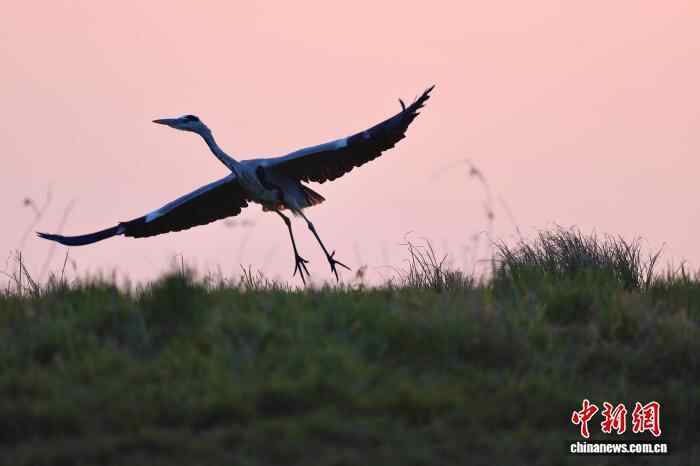 图为一只苍鹭展翅飞翔。中新社记者 韩苏原 摄