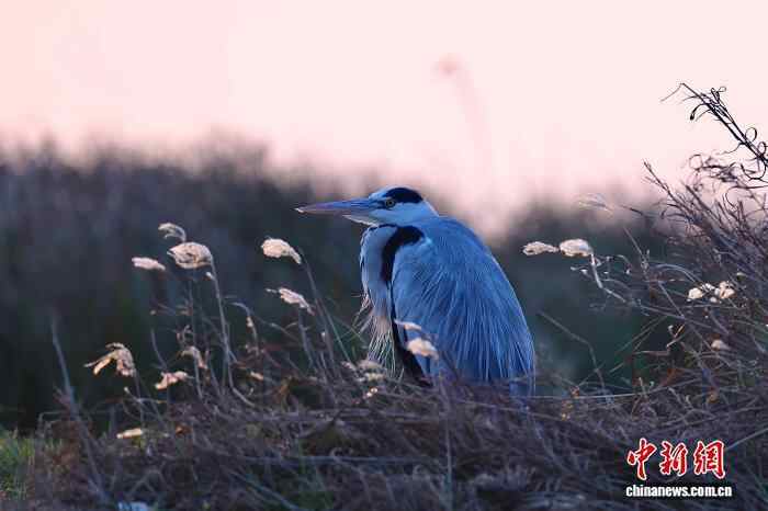 图为一只苍鹭在岸边休憩。中新社记者 韩苏原 摄
